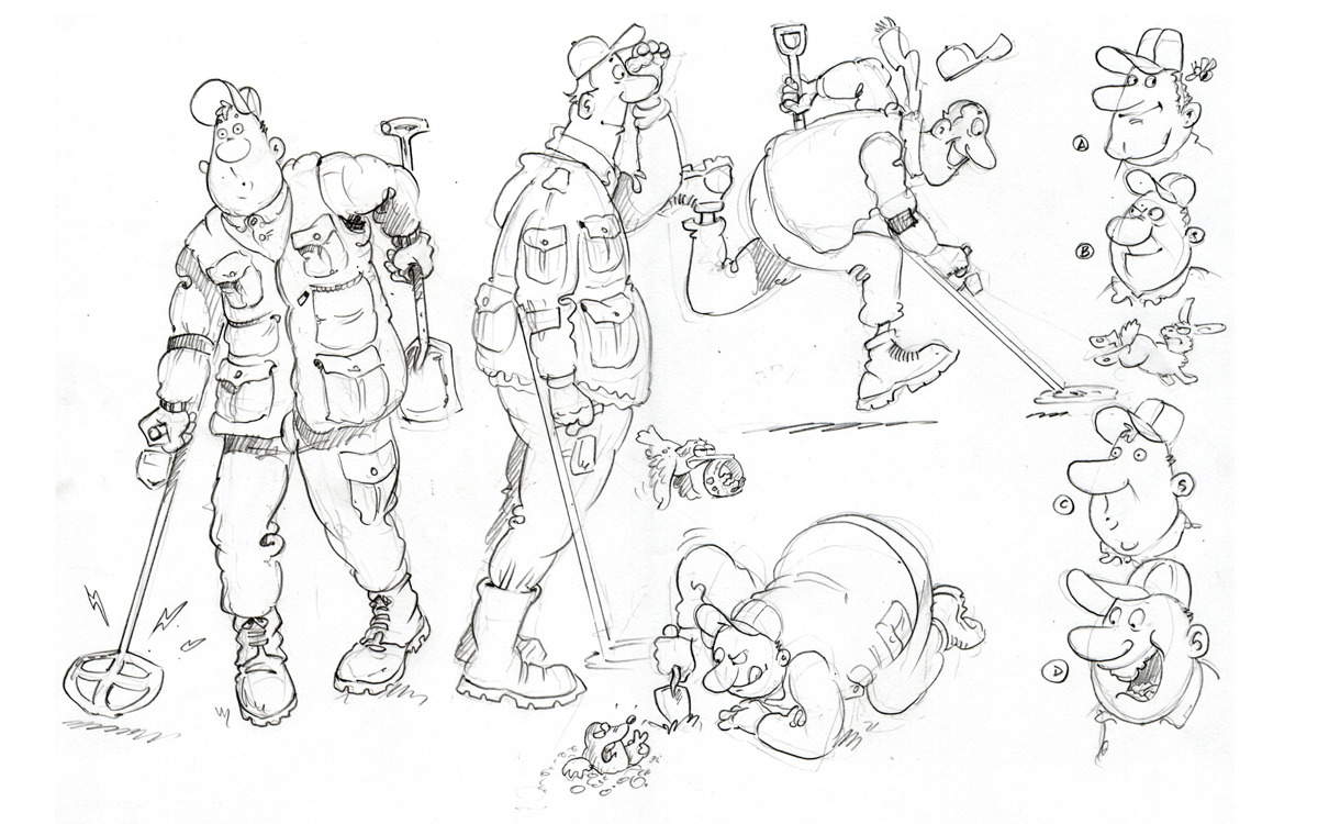The NCMD are responsible for conveying the do's and don'ts of metal detecting. We were challenged with finding the balance between being clear in our messaging while finding humour in the delivery. Here we introduce Robbie, who suffers various shortcomings when (not) abiding by the rules of metal detecting. We use the artist to interact with Robbie as the authority of NCMD, pointing out his mistakes and setting him back on the right path, while the background scenes and secondary characters draw on humour.