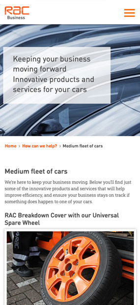 As RAC Business's website was already built in the Umbraco framework when they asked for our support, we carried out an Umbraco takeover. This involved taking over the management and support of the existing website.