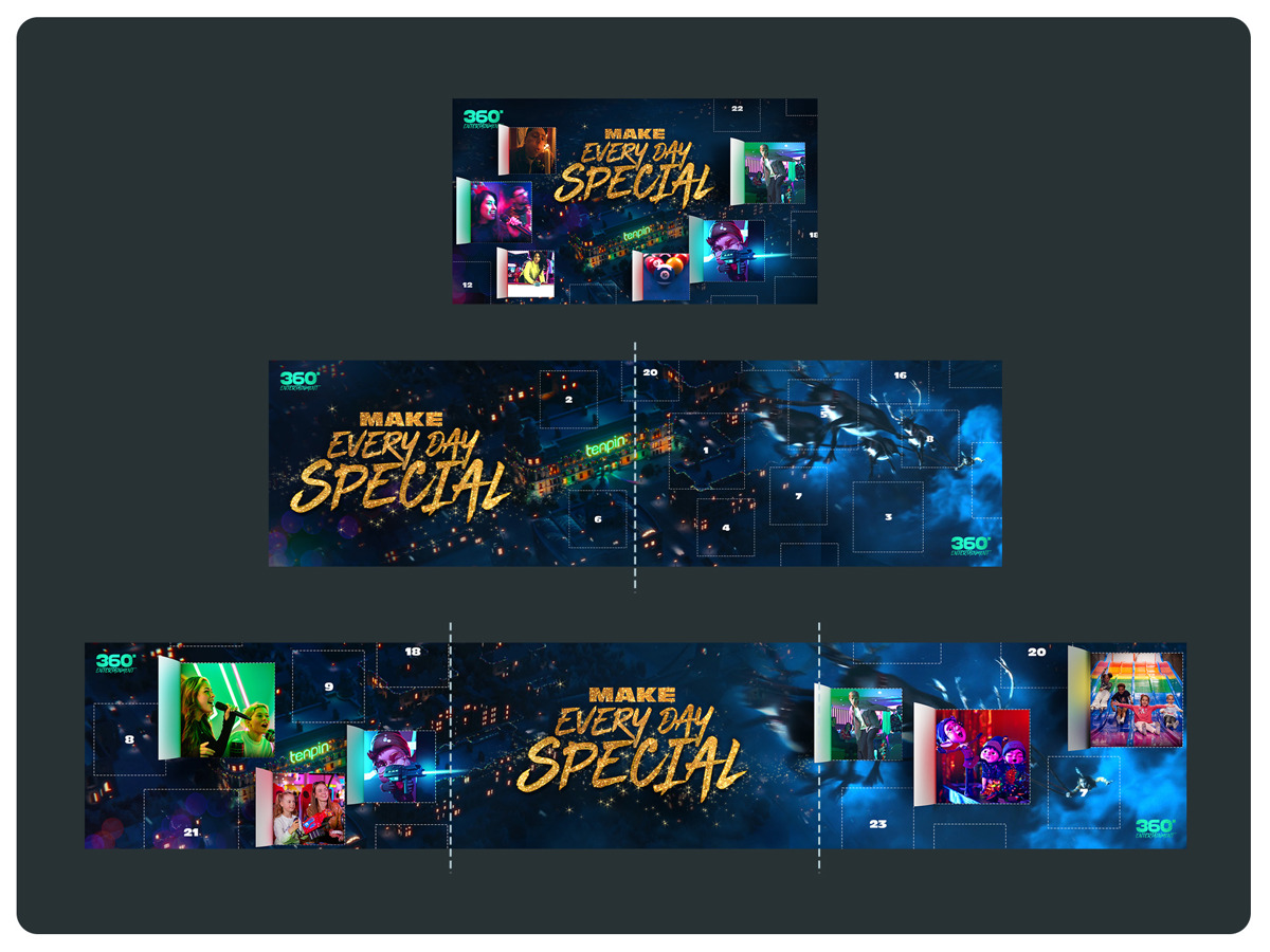 In close collaboration with Tenpin's Marketing Team, we've delivered against a range of exciting briefs: from party promos to concepting and delivering seasonal campaigns, to bringing full animation onto in-centre screens.