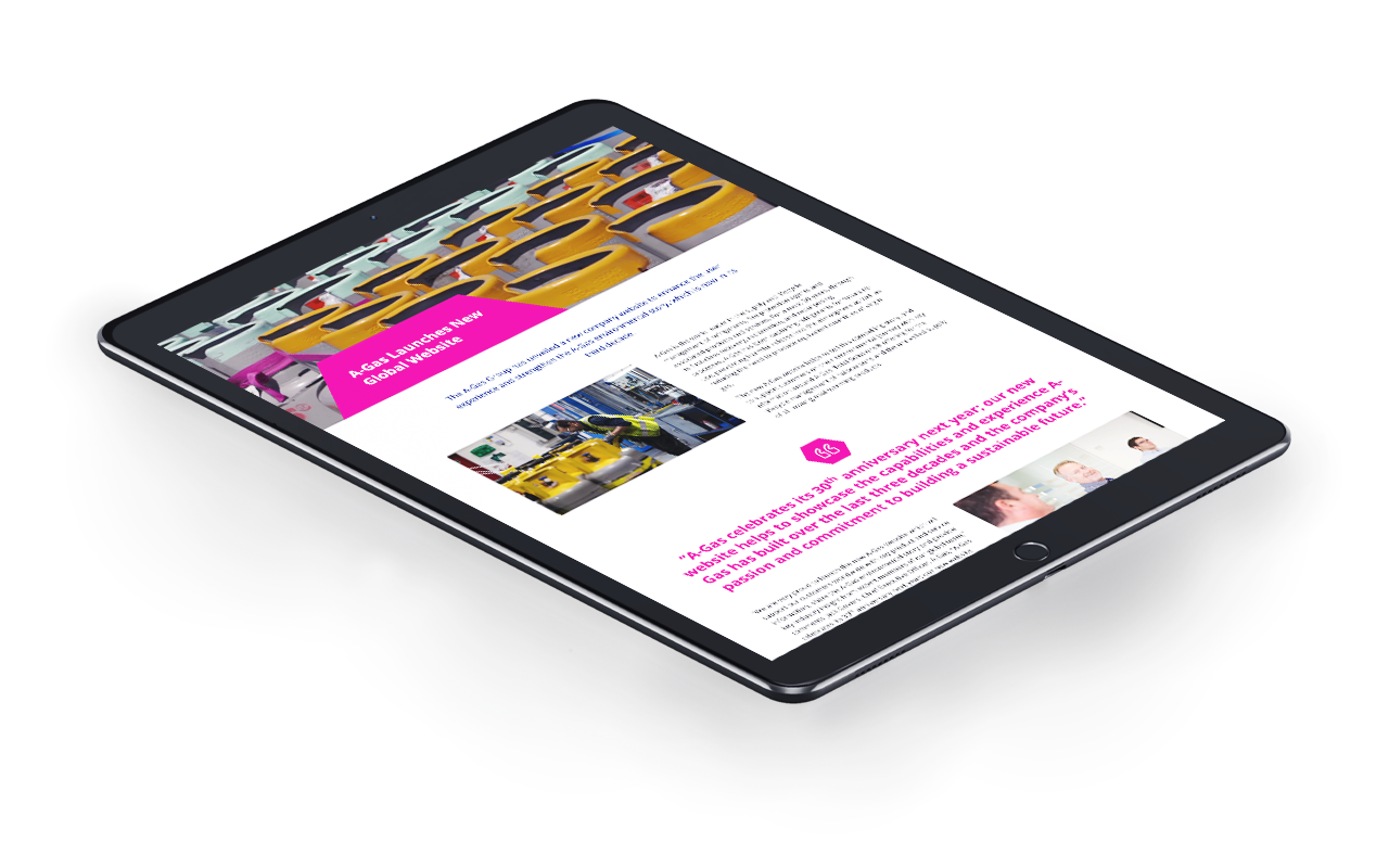 Mentor migrated the A-Gas website in 2019 and in 2021 we worked with the Executive and International Marketing teams to rebuild and deliver a multi-language, leading-edge website that communicates their competitive, world-class position as a responsible, environmentally-focused business.