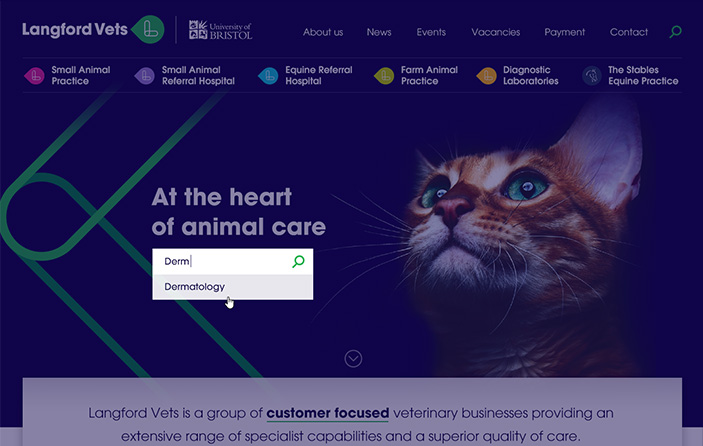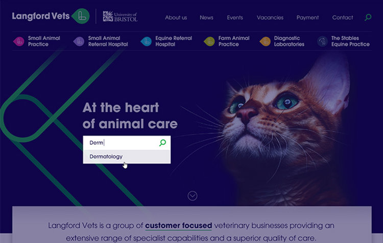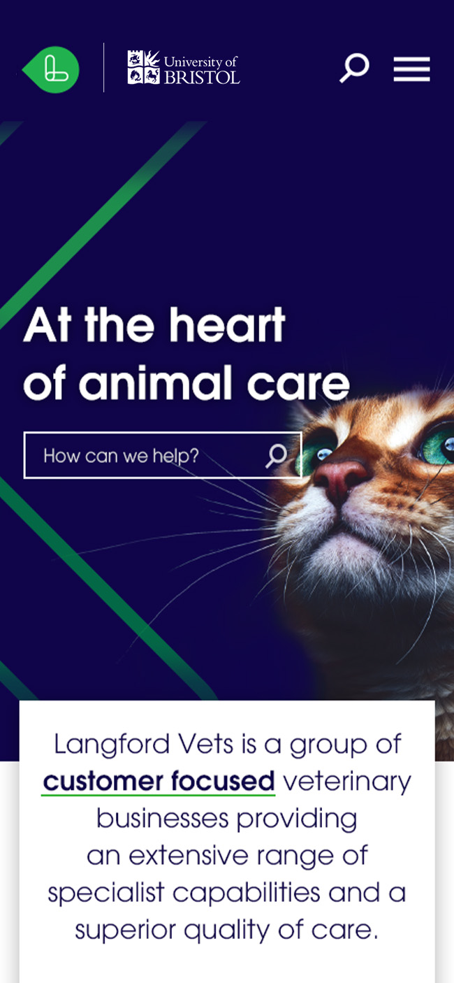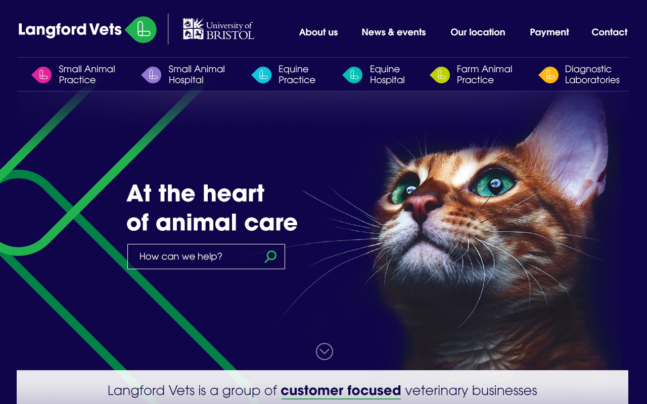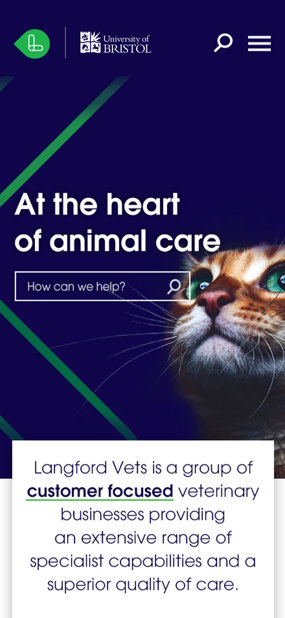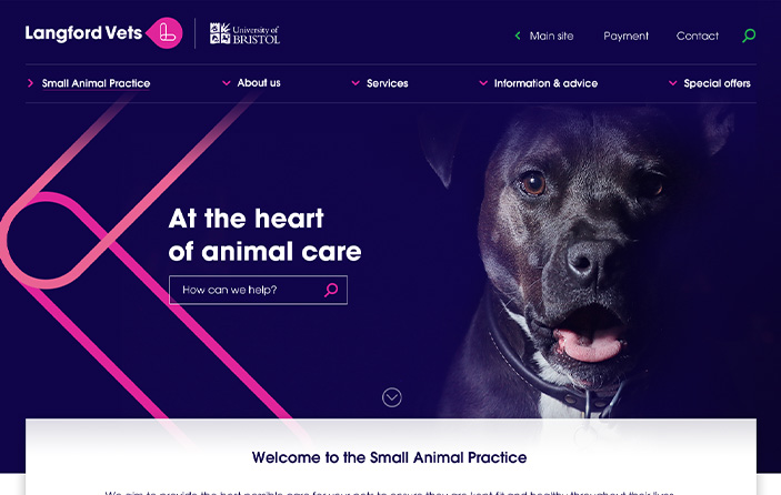 We were tasked with giving Langford Vets a whole new elegant look and feel with a complete rebrand. Our creative and user experience teams embraced the large UX challenge to create one site for the multiple practices, while establishing clear messaging for both Vets and pet owners. Our UX experts were also able to effectively guide the user through areas of the site that encouraged cross-selling of relevant services.
