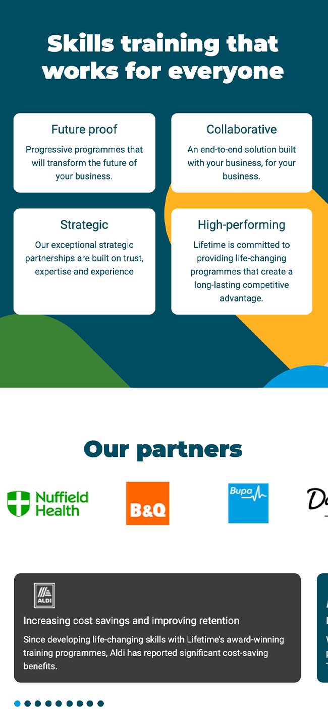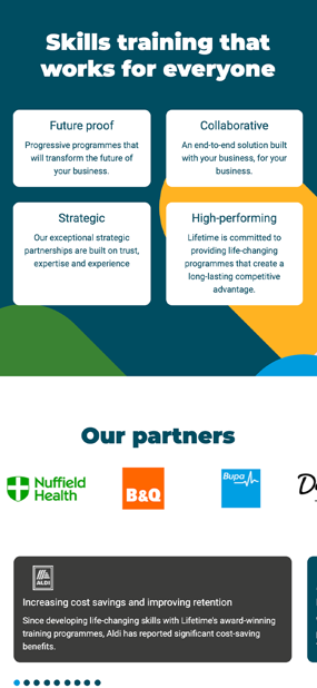 Mentor worked with the team at Lifetime to design and build their new website. The website needed to be an easily navigated space where prospective employers and partners can learn, discover and engage with Lifetime's services, connecting with them to move from potential interest, to an active partnership. To support these business goals Mentor delivered the following services: