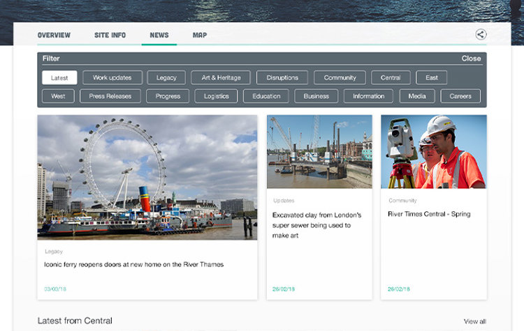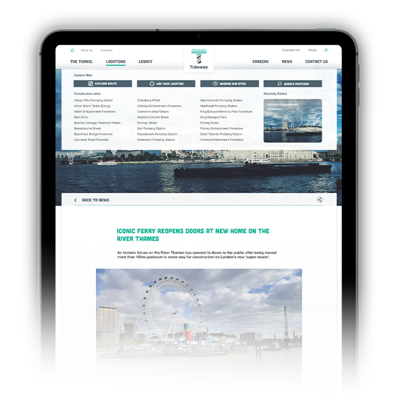 We designed and developed a new website and CMS that effectively communicates information and news updates about the project. To ensure Tideway's messaging was clear and compelling, our creative design team worked hard to give the project a strong identity.