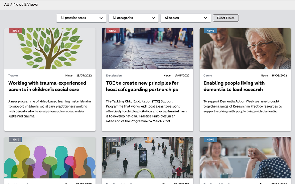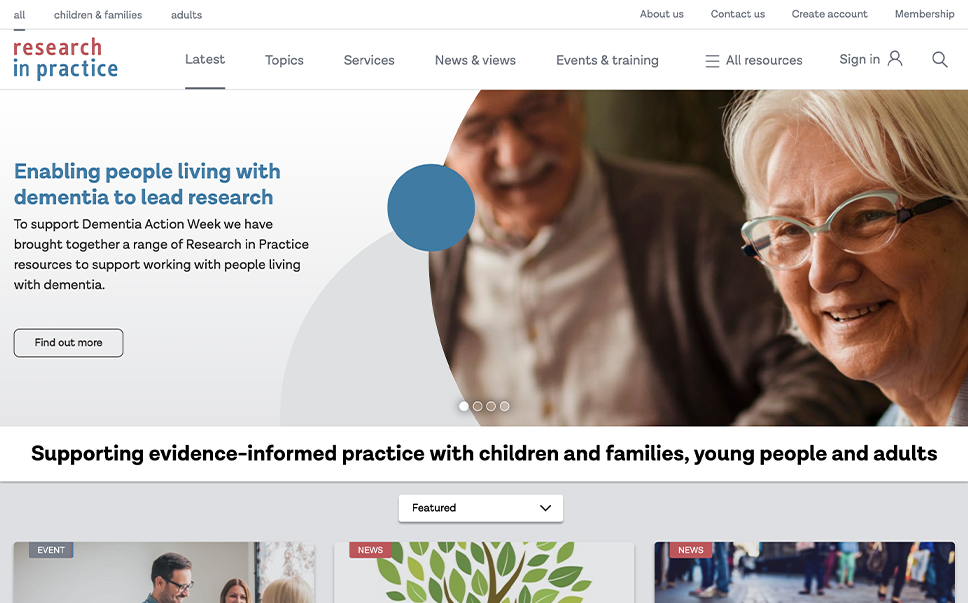 For Research in Practice, we delivered a new major website with CMS and CRM integration, events bookings, membership registration, e-learning, e-commerce and publications. This project saw the bringing together of multiple websites under one URL and included;