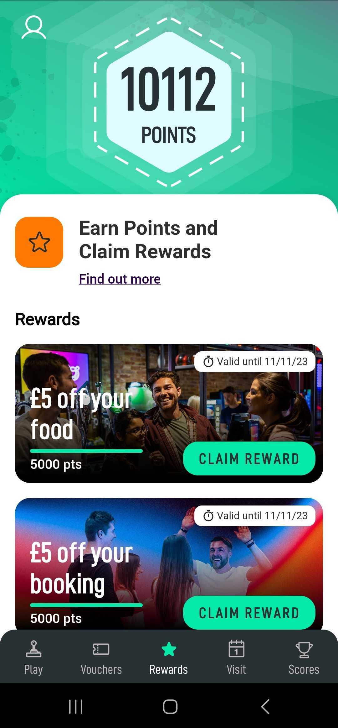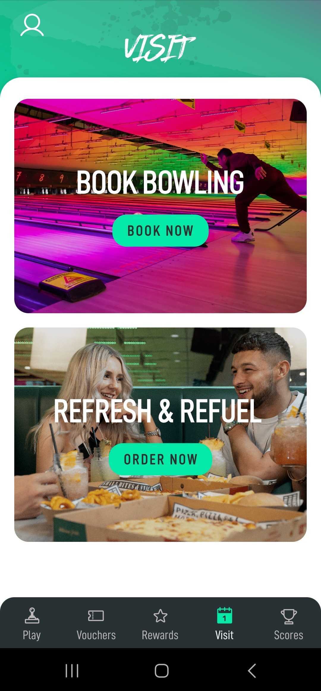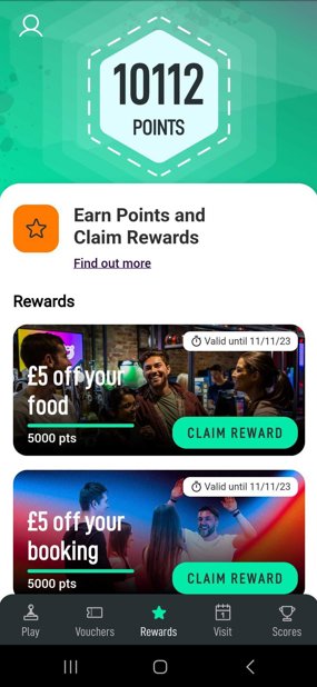 The app is all about giving you points for your loyalty. Every time you make a purchase, you'll earn points that can be redeemed for vouchers for bowling, food, and drink.
