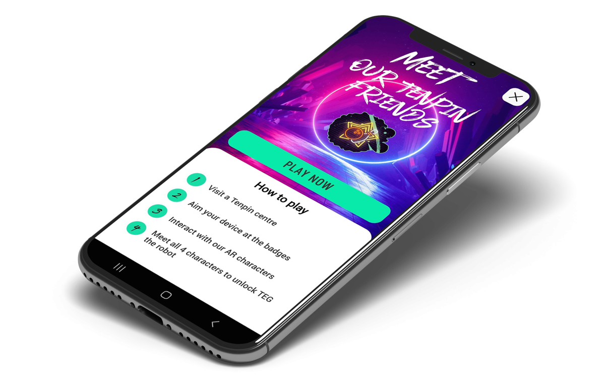 But that's not all! The app also features augmented reality (AR) technology. This means you can find hidden badges around the centers, scan them with your phone, and see four interactive animated characters come to life! When you've found all four characters, you'll unlock Teg the robot, Tenpin's truly interactive AR character.
