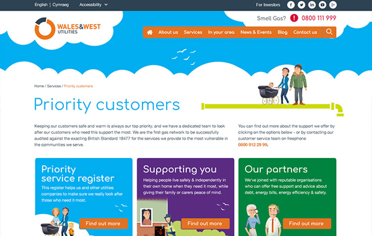 Seb Monks, Digital Marketing Consultant at Wales & West UtilitiesTaking on their newly developed branding we were excited to get started on the redesign and development, producing a modern, efficient, visually appealing website with a seamless browsing experience for website users.