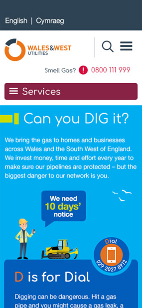 We have integrated various impressive features such as a road-mapping tool which lets users know of any planned or current works in their area - a continuation of WWU's great customer service. We have also implemented a full Welsh version of the site for their Welsh speaking audiences.